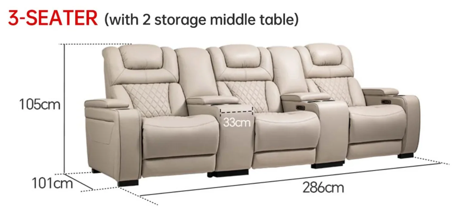Ghế xem phim thư giãn cao cấp VIVIDSTORM (Ghế ba) là mẫu recliner thiết kế dành cho phòng xem phim tại gia và không gian giải trí gia đình, kết hợp giữa thẩm mỹ tinh tế và trải nghiệm ngồi thư giãn chuẩn rạp. Phiên bản ba chỗ mang đến không gian rộng rãi cho ba người cùng tận hưởng, đồng thời đảm bảo mỗi vị trí đều có thể điều chỉnh độc lập để phù hợp với nhu cầu cá nhân. Với bề mặt da thật cao cấp, khung chịu lực chắc chắn và hệ thống motor điện vận hành êm ái, ghế vừa là điểm nhấn nội thất vừa là trung tâm giải trí thoải mái cho cả nhà.