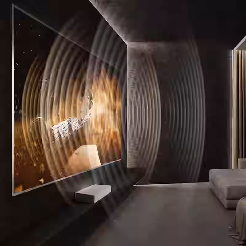 🎶 Công nghệ panel rung tích hợp loa: Mặt nhôm cứng 1.1 mm hoạt động như một màng cộng hưởng, biến màn chiếu thành hệ thống loa ẩn, mang lại trải nghiệm điện ảnh “hình và tiếng đồng nhất”.