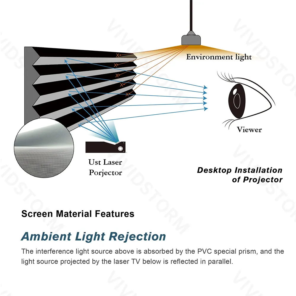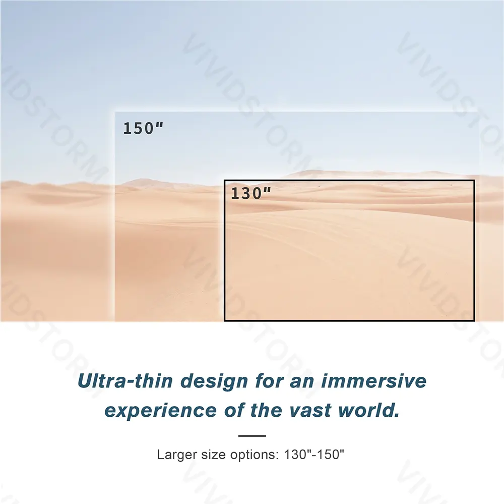 Màn chiếu quang học VIVIDSTORM ALR UST VFLST150H 150 inch (16:9) – dành cho máy chiếu siêu gần UST (Ultra Short Throw), là màn chiếu 150 inch cao cấp thuộc dòng Lite Hyper Lenticular ALR của VividStorm, thiết kế tối ưu cho máy chiếu siêu gần (Ultra-Short Throw / Laser TV). Với chất liệu Lenticular ALR độ gain ~0.8 và góc nhìn rộng 170°, màn mang đến hình ảnh sáng rõ, màu sắc tự nhiên và độ tương phản nổi bật hơn so với ALR tiêu chuẩn, đặc biệt hiệu quả trong phòng có ánh sáng từ phía trên. Khả năng chống sáng môi trường vượt trội, độ phẳng tuyệt đối và hỗ trợ nội dung 4K/8K giúp VFLST150H là lựa chọn lý tưởng cho trải nghiệm xem phim, thể thao hay giải trí trong phòng khách hiện đại.