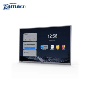 Màn hình có đầy đủ các cổng kết nối như HDMI, USB, USB-C, LAN, Wi‑Fi và Bluetooth. Người dùng có thể chia sẻ nội dung từ laptop, máy tính bảng hoặc điện thoại nhanh chóng, thuận tiện cho các buổi họp và lớp học tương tác.